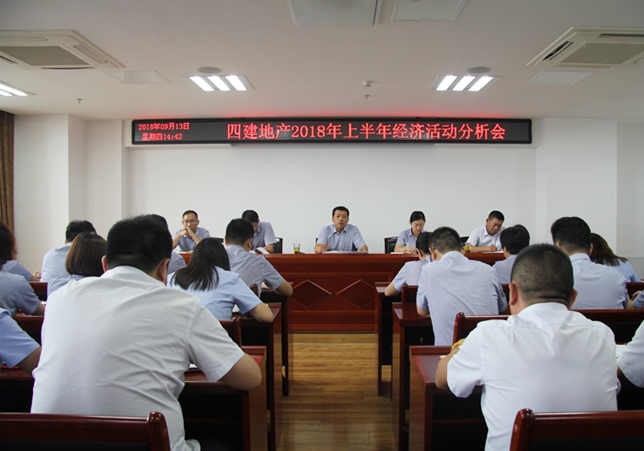 9月13日下午,四建地產2018年上半年經濟活動分析會在美林大廈23層大會議室召開,四建地產中層以上領導,萬盛物業領導班子全體及財務負責人、小區負責人參加了會議。