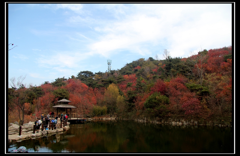 進入景區(qū)到登木棧道入口之間約有三公里行程,40余人的團隊浩蕩前行。秋季的九如山紅葉黃葉滿山,秋韻十足,美不勝收,一路上大家有說有笑,釋放工作的壓力。景區(qū)內(nèi)的木棧道蜿蜒曲折直通山頂,大家的興致很高,有的想一探究竟則輕快的走在隊伍前列,有的因留戀身邊的美景而走走停停,隊伍逐漸分散開來,但是在有序的組織下,大家都順著木棧道向上攀登,誰也沒有掉隊。