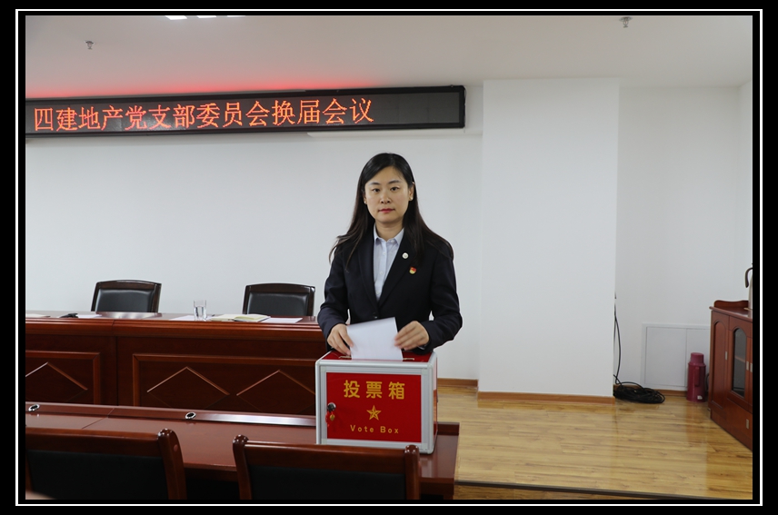 會議第二項,四建地產常務副總李茜同志宣讀選舉辦法,推舉了監票人及計票人,并宣讀了新一屆支部委員會委員名額和候選人基本情況。在投票環節中,監票人和計票人檢查票箱、監督投票、公開計票,嚴格按照公平、公正、公開的原則。經黨員大會無記名投票,選舉產生了四建地產新一屆黨支部委員會委員。