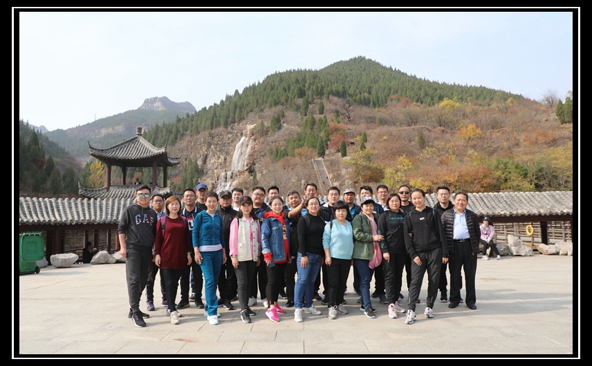 本次的徒步活動地點“黃花溪”被譽為天下第一大幽谷,又被眾多游客稱為“北方九寨溝”。晚秋時節,漫山遍野的楓葉和黃草倒是十分應景,不冷不熱的天氣,到此徒步再合適不過。員工們于上午九點左右乘車到達景區入口處,黃花溪大門是一個巨石結構的造型,徒步活動也從這里正式開始。