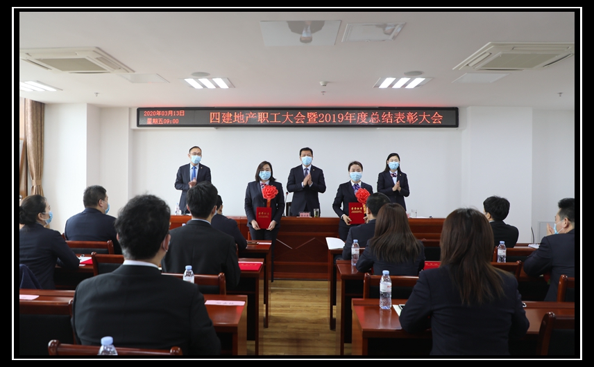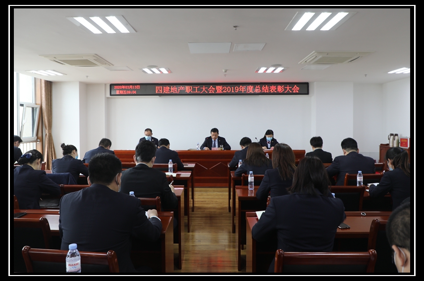 3月13日上午,四建地產職工大會暨2019年度總結表彰大會在四建地產大會議室圓滿召開。四建地產、萬盛物業中層以上管理骨干及受表彰員工參加會議。
