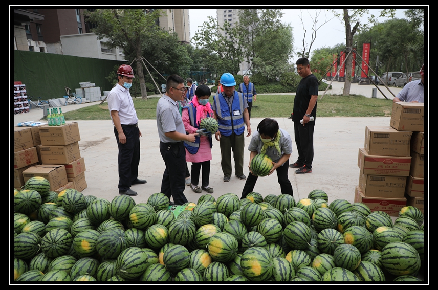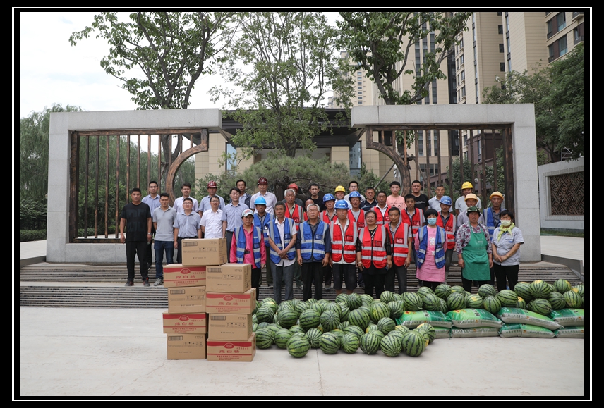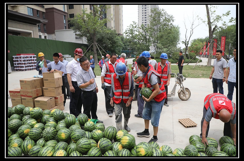 為了確保一線建筑工人的身體健康及項目的安全生產,6月16日上午,四建地產工程管理部部長周文昌一行代表公司為一線工人送去了西瓜、花露水、綠豆、白糖等防暑降溫物資,感謝他們為工地建設所做出的貢獻,并叮囑大家做好防暑措施,注意自身安全。
