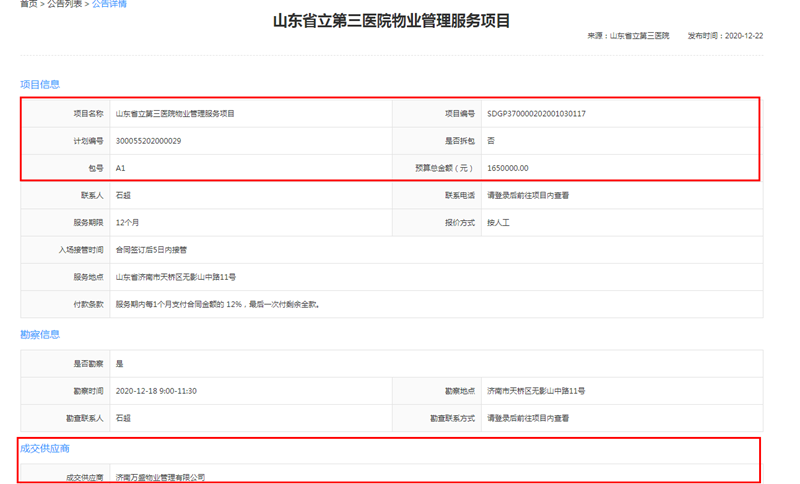 2020年12月22日,繼省立三院保潔項(xiàng)目之后,濟(jì)南萬盛物業(yè)管理有限公司再次順利中標(biāo)省立三院維修項(xiàng)目。