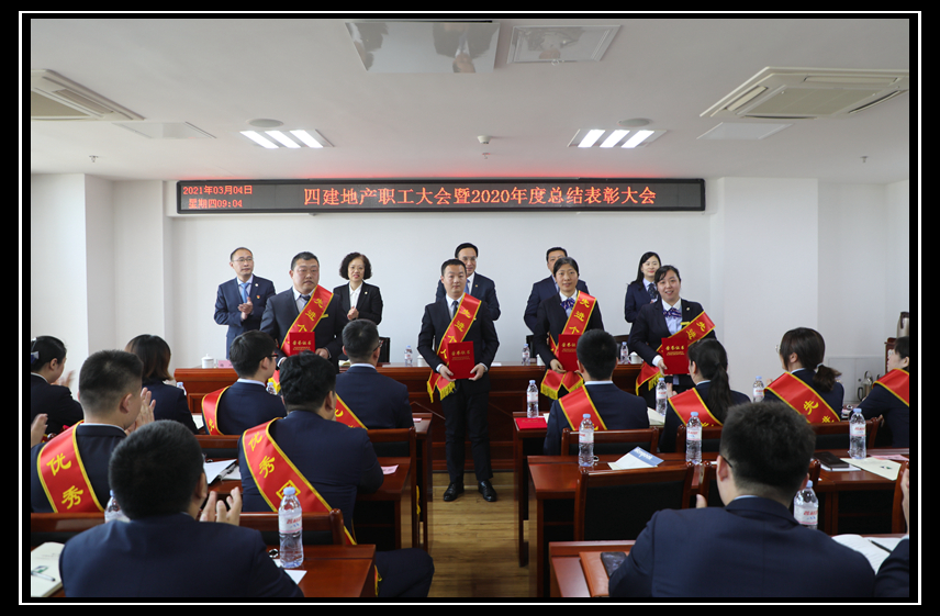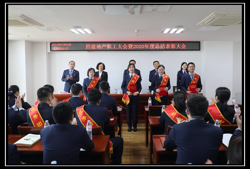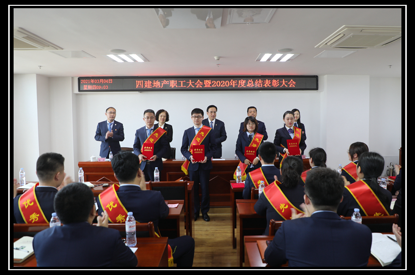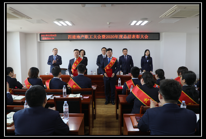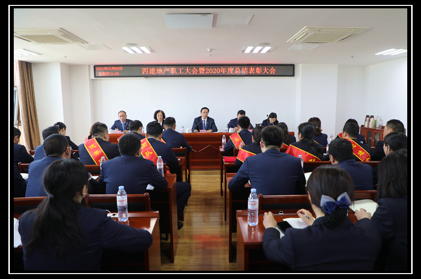 3月4日上午,四建地產職工大會暨2020年度總結表彰大會在四建地產大會議室圓滿召開。會議集中傳達學習了集團第十二屆二次職工代表大會會議精神,總結了2020年各項工作完成情況及安排部署了2021年重點工作任務。集團公司黨委書記、董事長曹曉巖,集團公司紀委副書記、工會副主席、黨群工作部部長、監察室主任李迎新出席會議。全體員工及萬盛物業員工代表參加會議。會議由四建地產黨支部副書記楊沖主持。