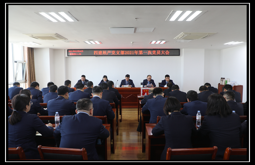 職工大會結束后,按照集團黨委的通知要求,四建地產黨支部召開了2021年第一次黨員大會。大會明確了本次組織生活會主題及形式,對支部全體黨員進行了民主評議。