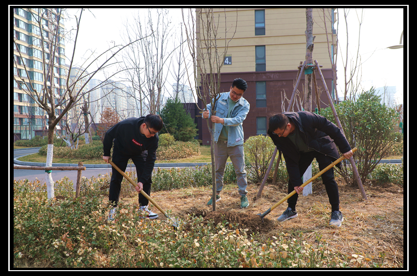 “孟春之月,盛德在木”。為慶祝第43個(gè)植樹節(jié),進(jìn)一步美化小區(qū)環(huán)境,增強(qiáng)環(huán)保意識(shí),3月12日上午,四建地產(chǎn)團(tuán)支部在濟(jì)陽·金海福苑社區(qū)成功舉辦了第十屆“綠動(dòng)青春·美化家園”植樹活動(dòng)。集團(tuán)團(tuán)委副書記隋玉曉同志應(yīng)邀參加了本次活動(dòng)。