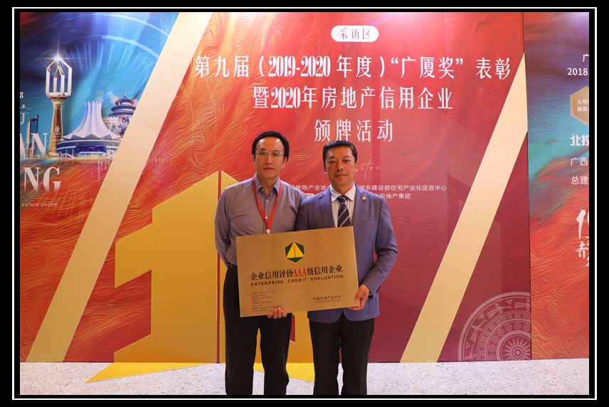 2021年4月8日至9日,由中國房地產業協會主辦的“第九屆‘廣廈獎’表彰暨2020年度房地產信用企業頒牌儀式”在廣西南寧隆重召開。集團公司黨委書記、董事長曹曉巖出席儀式,集團公司副總經理、四建地產總經理徐洪濤代表四建地產領取AAA信用獎牌。