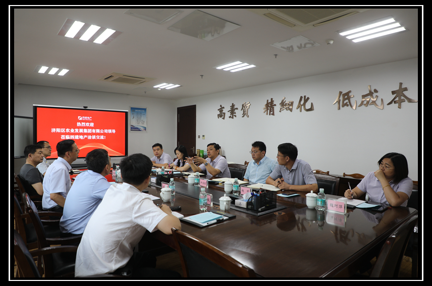 9月18日,濟(jì)陽區(qū)農(nóng)業(yè)發(fā)展集團(tuán)有限公司董事長李庶東一行五人到訪四建地產(chǎn)洽談交流。集團(tuán)公司副總經(jīng)理、四建地產(chǎn)總經(jīng)理徐洪濤帶領(lǐng)地產(chǎn)公司班子成員及部分部門負(fù)責(zé)人進(jìn)行了熱情接洽。
