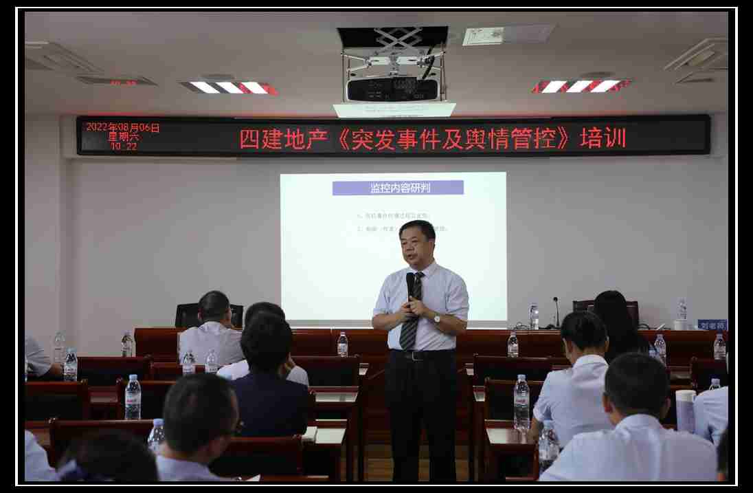為幫助員工掌握突發事件發生規律和特征,提升危機事件處置和談判能力,建立應對突發事件管理制度。8月6日,四建地產在23樓大會議室開展了“突發事件及輿情管控”內部培訓。本次培訓主要針對四建地產全體員工和萬盛物業骨干員工,共60余人參加。