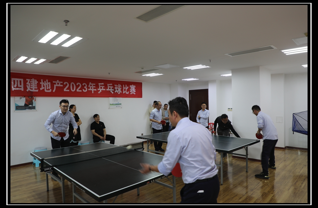 為加強企業文化建設,進一步活躍職工業余生活,增強職工向心力和凝聚力,4月21日,四建地產在大廈24樓乒乓球室成功舉辦了,以“‘乒’出精彩,‘乓’出活力;傳國球精神,展員工風貌”為主題的2023年乒乓球比賽。本次比賽共有18人參加,四建地產黨支部副書記楊沖、四建地產副總經理畢曉明出席活動。