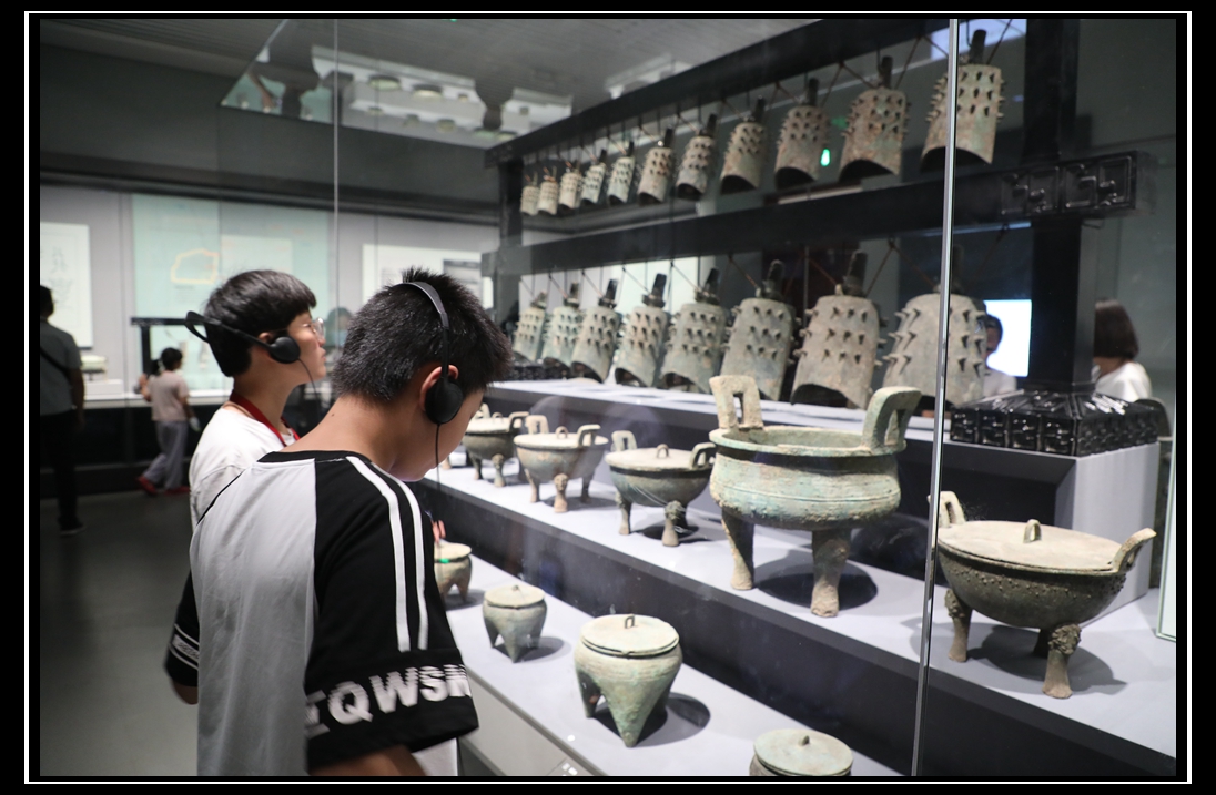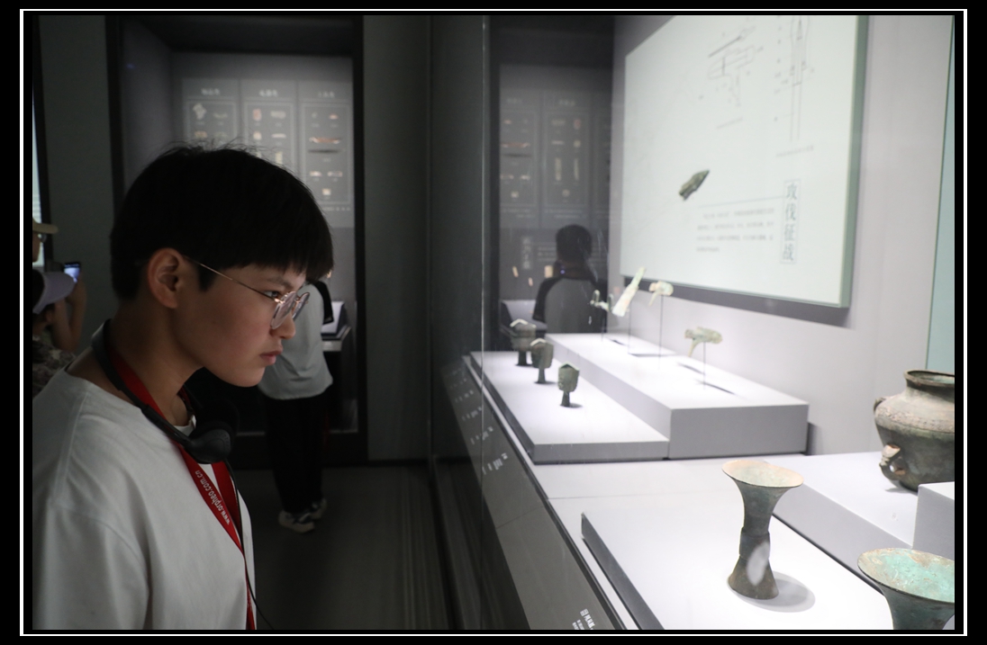 在智能導(dǎo)覽機(jī)器的講解中,學(xué)生們參觀了山東省博物館新推出的“海岱日新——山東歷史文化陳列”。該展覽分為史前、夏商周以及秦漢至明清三個部分,全面立體展現(xiàn)了山東六十萬年人類史、一萬年文化史、五千年文明史、三千年齊魯文化史、一百年奮斗史。在展覽中,學(xué)生們欣賞到了許多珍貴的文物,如大汶口文化八角星紋彩陶豆、西周頌鼎等。此外,四建地產(chǎn)員工還帶領(lǐng)他們依次參觀了商代亞醜鉞、銀雀山漢簡等十件“鎮(zhèn)館之寶”,濟(jì)陽小朋友們在一陣陣感嘆聲中感受著齊魯大地的滄桑巨變,體會著中華優(yōu)秀傳統(tǒng)文化的魅力。