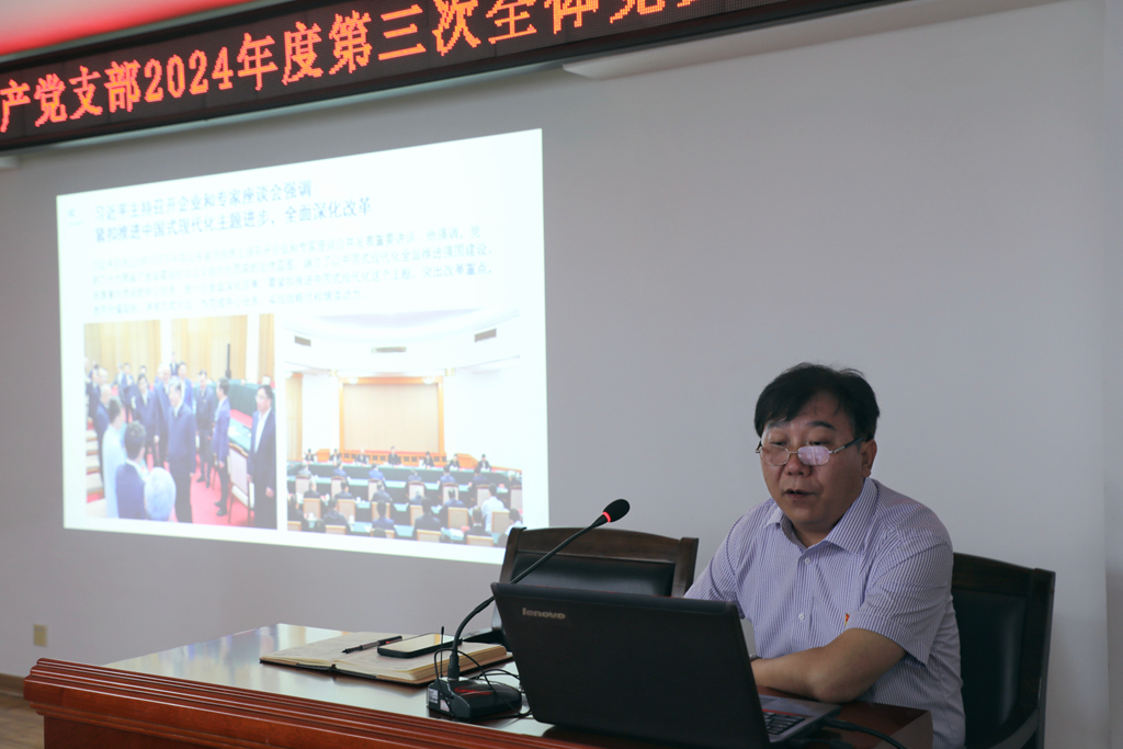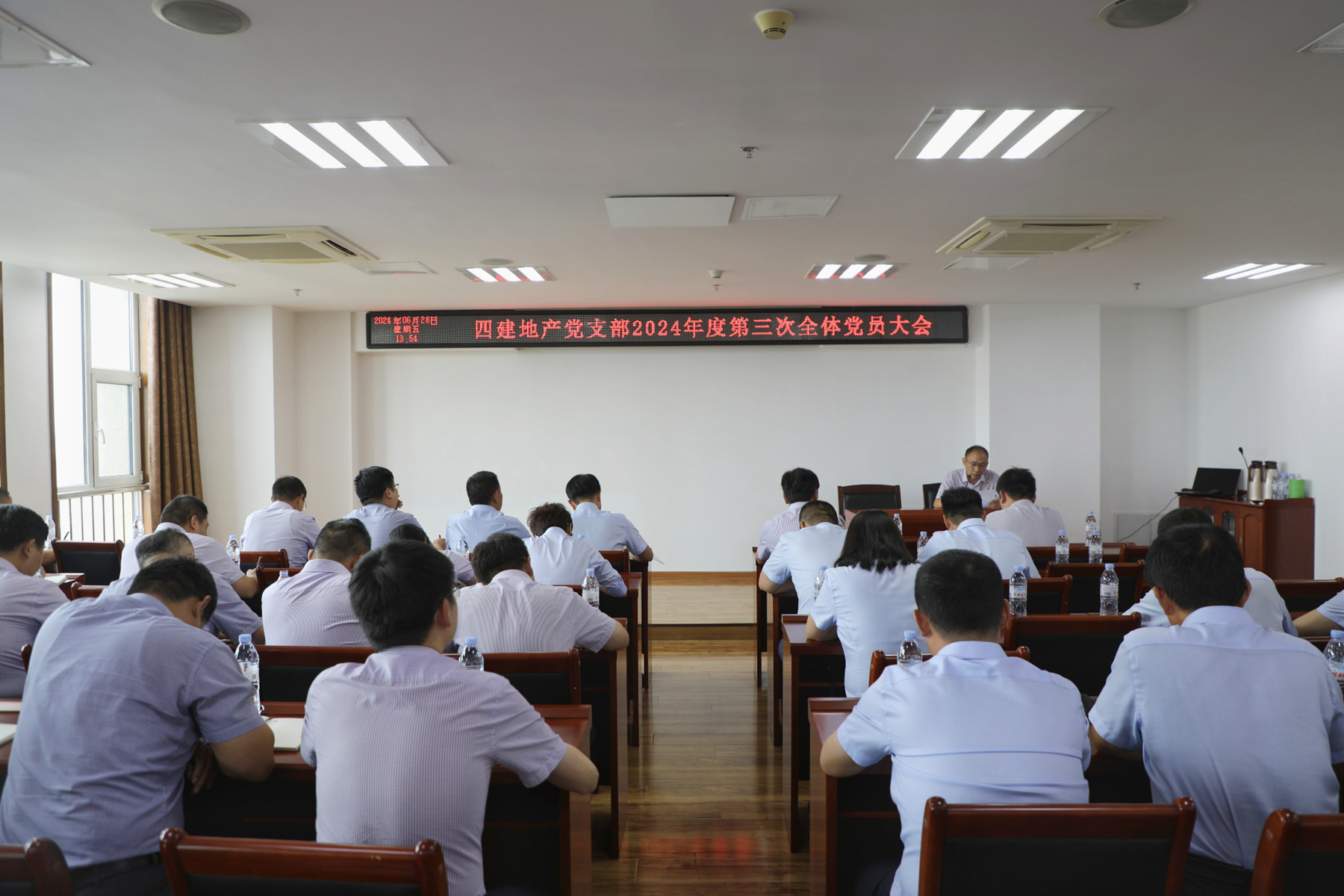 6月28日下午,四建地產(chǎn)黨支部在美林大廈23層大會(huì)議室召開2024年度第三次全體黨員大會(huì)暨專題黨課,36名正式黨員參加會(huì)議,會(huì)議由黨支部副書記楊沖主持。
