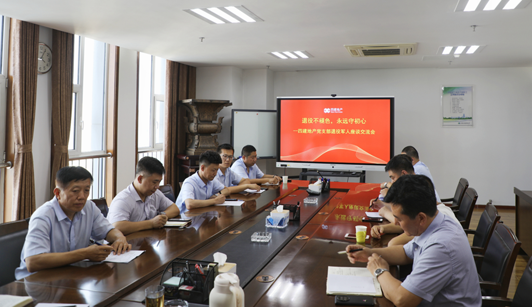 參觀結束后,退役軍人全體到四建美林大廈小會議室開展座談交流會,集團黨委委員、四建地產黨支部書記尚華,黨支部副書記楊沖出席會議。首先,尚華書記向奮戰在工作一線的復轉軍人表達了真摯問候和美好祝愿。接著,與會人員依次分享了自己的軍旅生涯中,結合本職崗位提出了對公司發展的意見建議,并紛紛表示要在工作崗位上繼續保持軍人的優良作風,詮釋軍人退伍不褪色的責任擔當。會議最后,尚華書記結合自身成長經歷和身邊優秀退役軍人的案例,鼓勵、激勵退役軍人,并對他們提出殷切希望:一是繼續發揚軍人吃苦耐勞、腳踏實地的光榮品質,為企業發展凝聚正能量;二是立足本職崗位,樹立終身學習意識,做管理工作的行家里手;三是要繼續保持軍人的優良傳統,奮發進取,爭當企業發展的中堅力量。同時,尚華書記表示,公司將持續關注關心退伍軍人,為廣大退伍軍人充分發揮“退役不褪色、退伍不退志”的使命擔當搭建平臺、提供機遇。