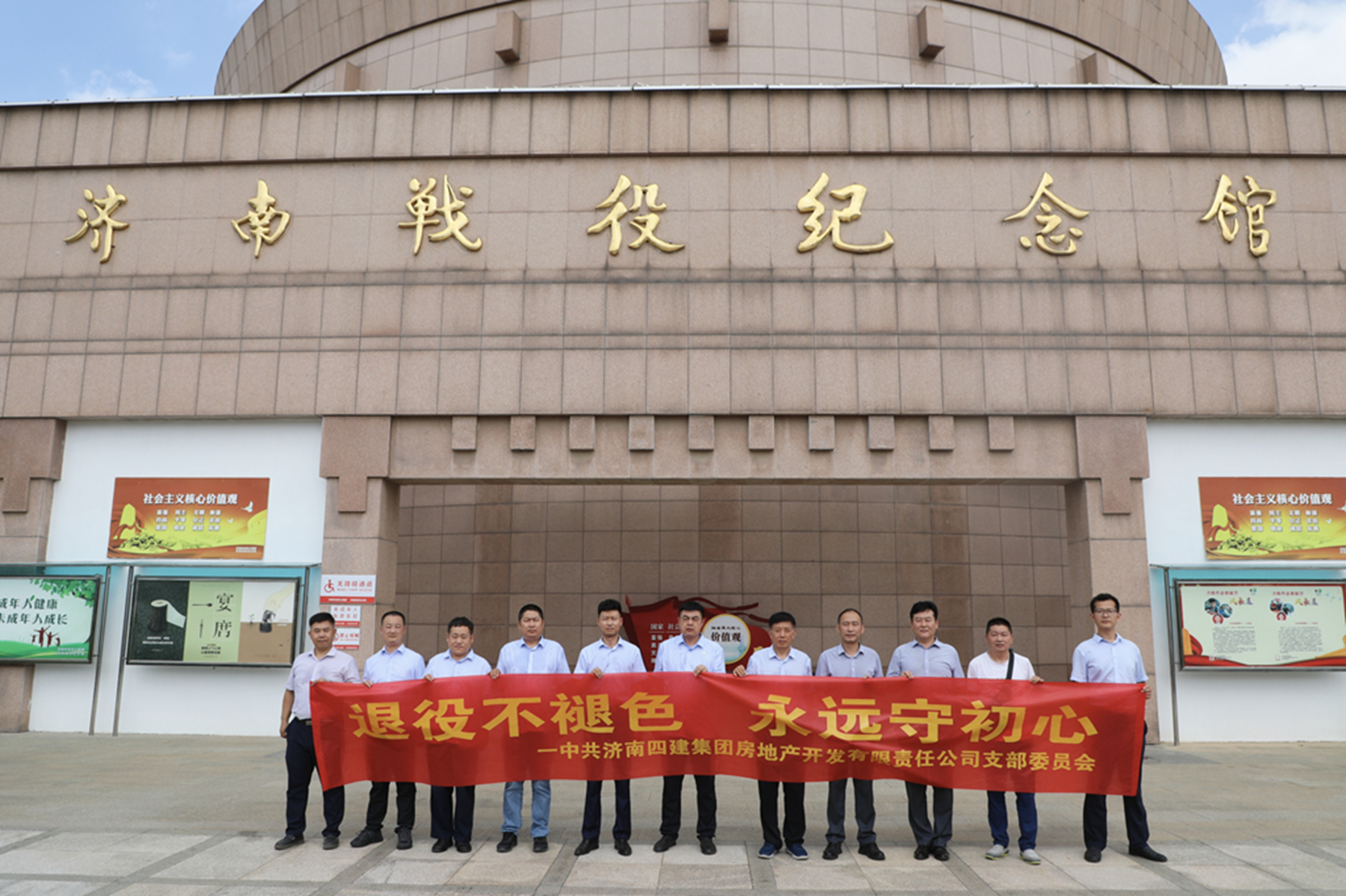 四建地產及萬盛物業現有退役軍人12名,并全部是共產黨員。他們首先來到濟南戰役紀念館參觀學習,依次參觀了“和戰博弈 生死較量”“運籌帷幄 劍指濟南”“厲兵秣馬 蓄勢待發”等8個主題展廳。在實物陳列、圖文展板、影像資料的多樣展現下,退役軍人深入細致地了解到濟南戰役的歷史背景、過程、地位和意義,進一步學習到中國人民解放軍的光輝歷史和革命精神。一封封家書、一件件文物、一幅幅舊照,仿佛在歌唱著那永垂不朽的“愛黨愛軍、依靠人民、英勇頑強、敢于勝利”的濟南戰役精神。這次參觀學習,退役軍人的黨性修養和歷史使命感、責任感獲得了進一步提升。
