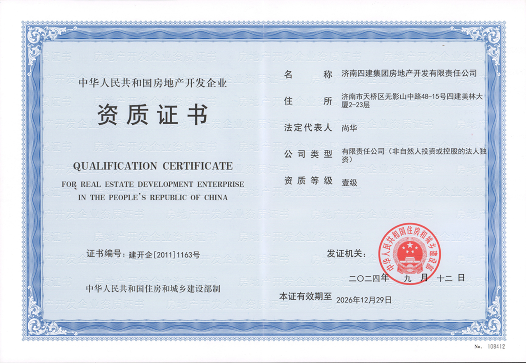 近日,經(jīng)住房和城鄉(xiāng)建設(shè)部審核、公示、公告,四建地產(chǎn)順利延續(xù)房地產(chǎn)開發(fā)企業(yè)一級資質(zhì),這是四建地產(chǎn)在2011年晉升一級資質(zhì)以來第四次成功延續(xù)房地產(chǎn)開發(fā)企業(yè)一級資質(zhì)。本次資質(zhì)審核工作因竣工備案表和法人變更等因素,較往年發(fā)布時間有所推遲。