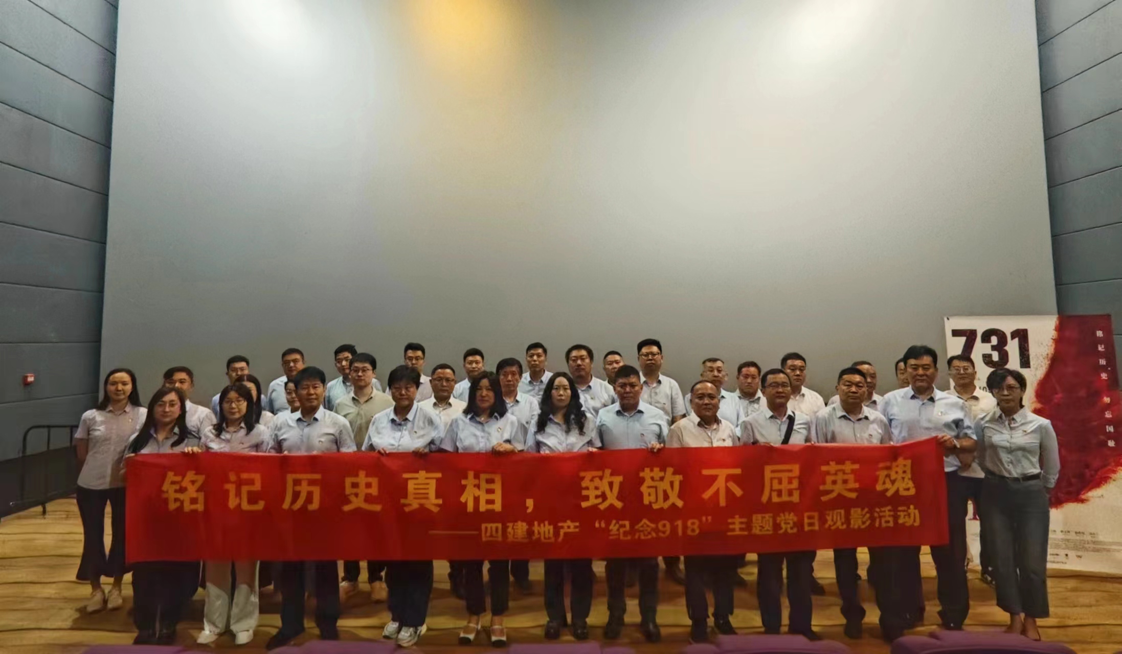 2025年9月18日下午,在“九一八事變”94周年之際,為踐行社會主義核心價值觀、弘揚愛國主義精神,在四建地產副總經理、萬盛物業總經理李勇的帶領下,四建地產黨支部組織全體黨員、入黨積極分子、青年員工代表,開展了“銘記歷史真相,致敬不屈英魂”主題觀影活動,共同觀看愛國主義教育影片《731》。